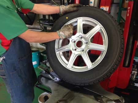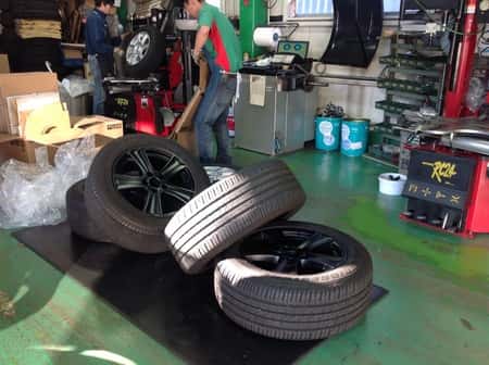 ご予約いただいている、スタッドレスタイヤとホイールの組み付け作り置き作業を