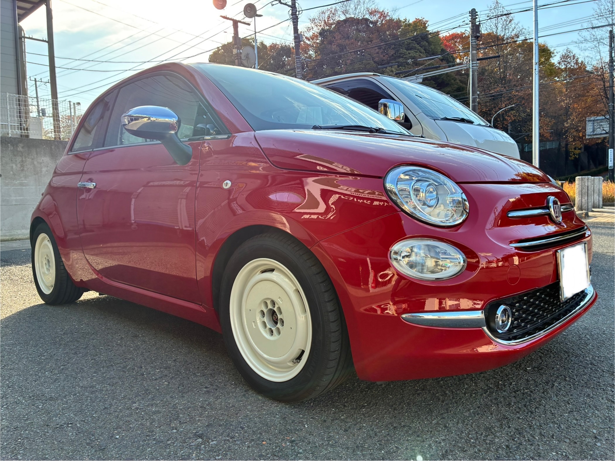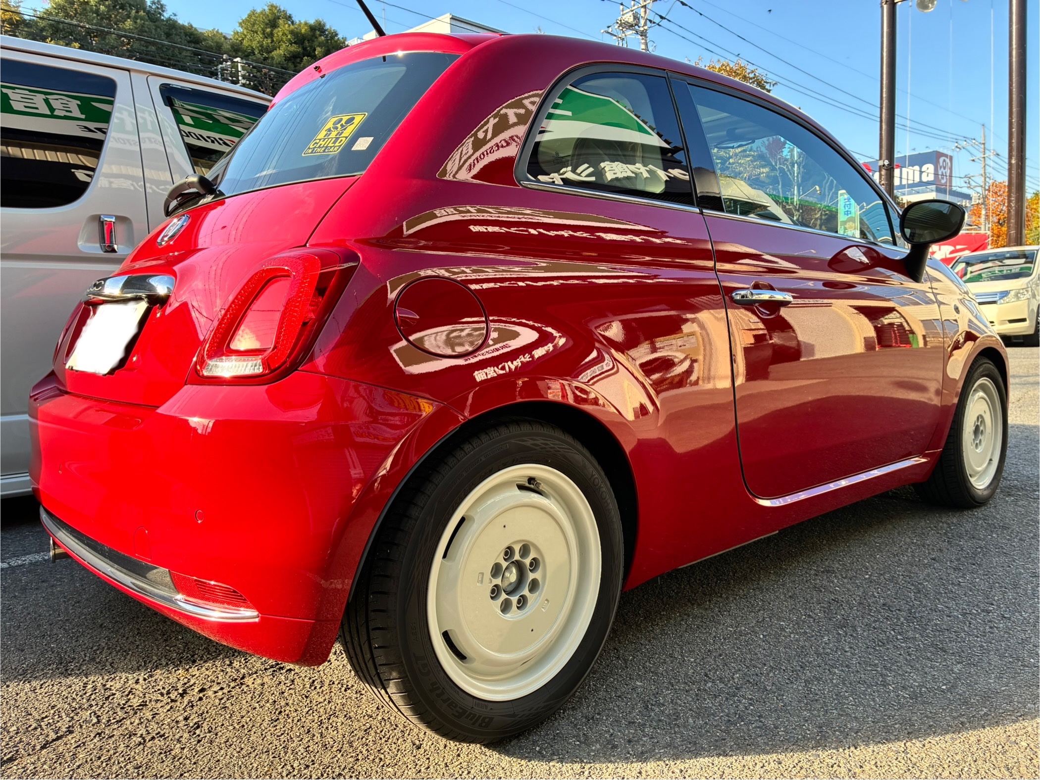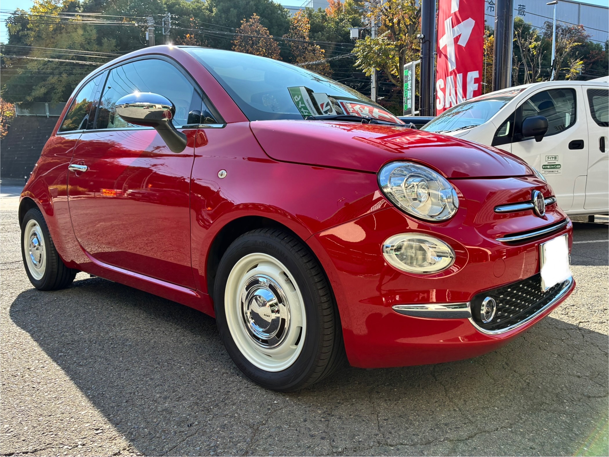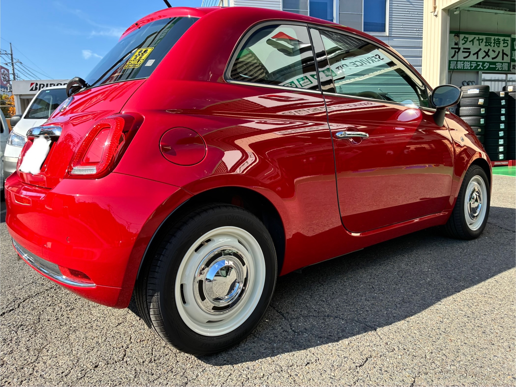 本日は、輸入車のFIAT500。かわいらしいフォルムで人気のクルマです。
