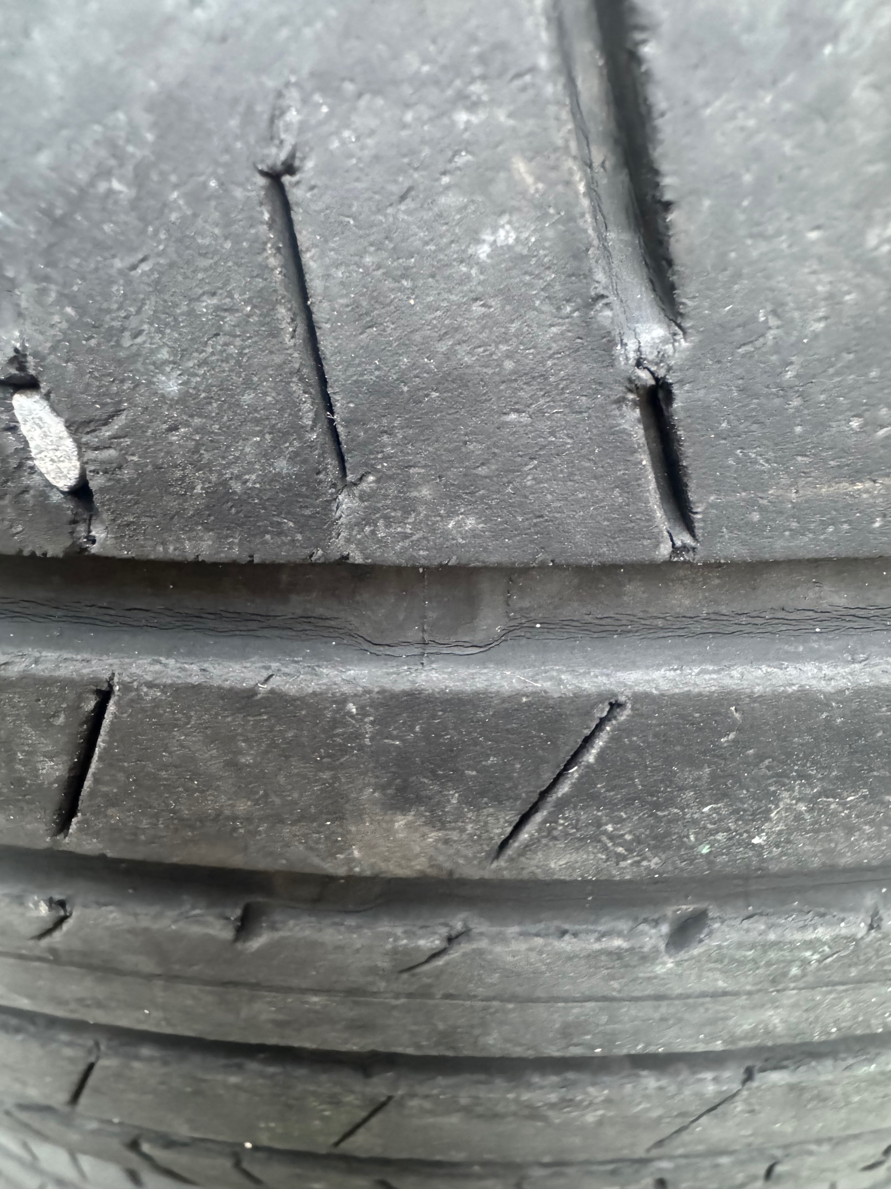 雨の日に滑りやすかったり、表面が硬くなってることで縁石などに引っかけた時に裂けたりしやすい状況ですので交換をオススメしました。