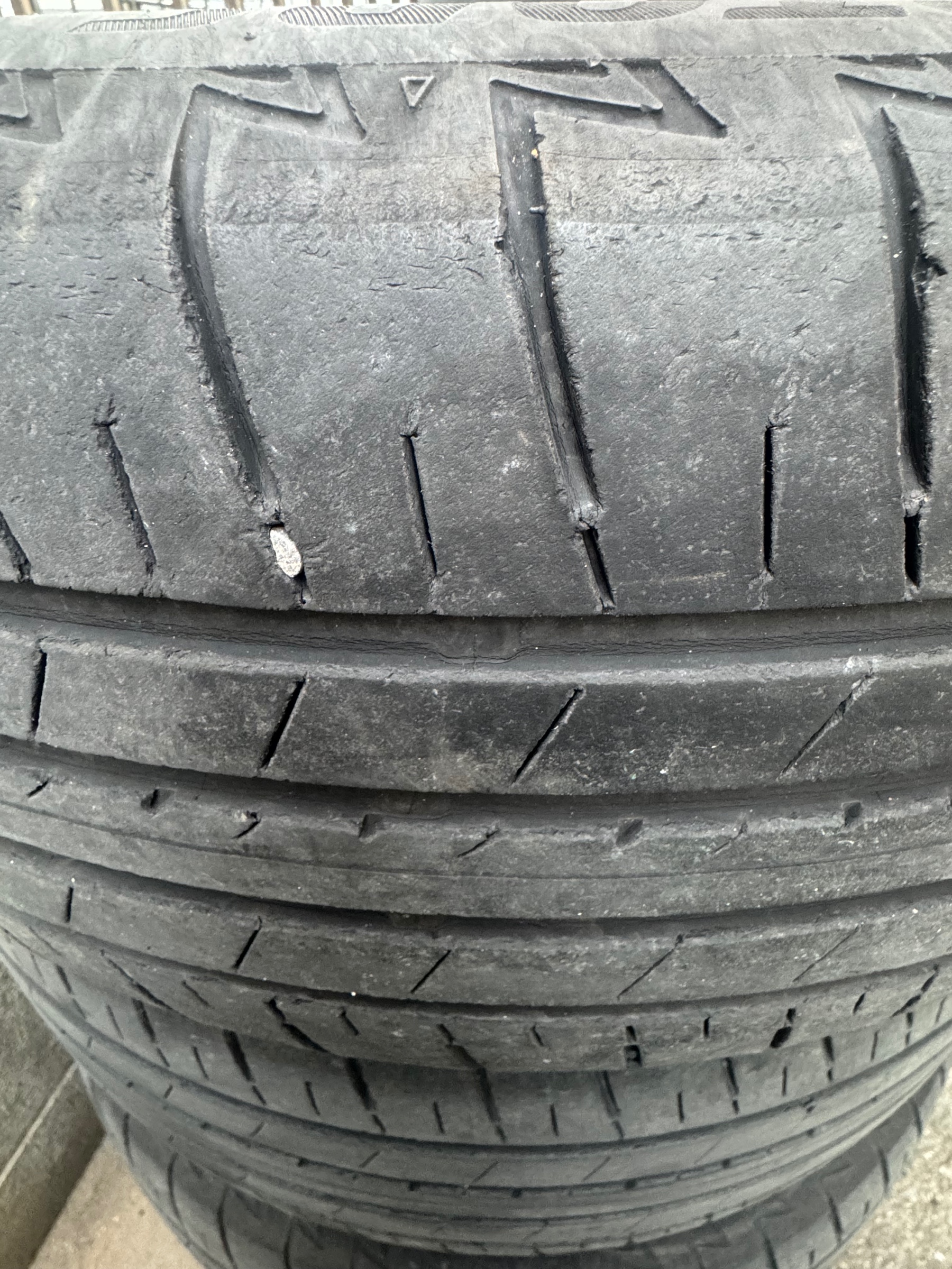 ショルダー部の劣化、トレッド面もひび割れが見られゴムの表面が硬くなってるのが確認できますね。
