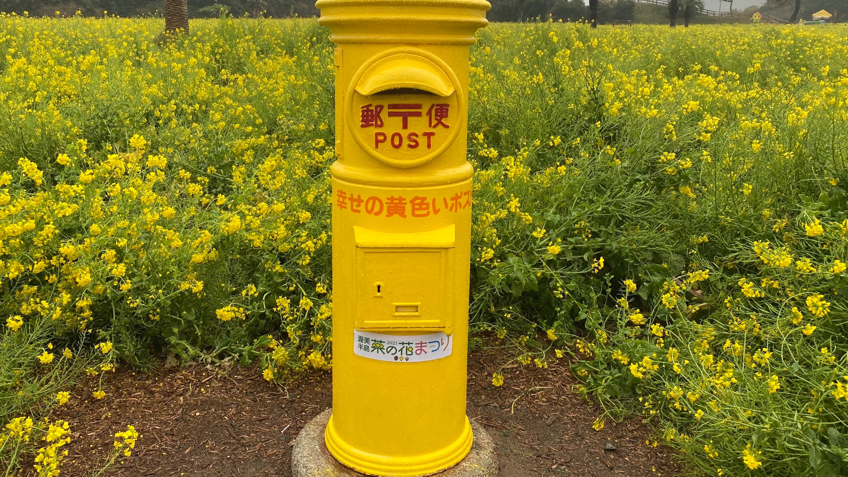 畑の中にはお洒落な黄色のポストも置かれてました。