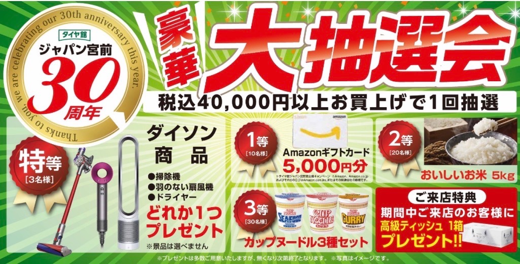 タイヤ館ジャパン宮前店はおかげさまで開店30周年を迎える事ができました。