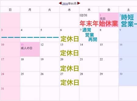 31日(木)と1月1日(金)を年末年始休業とさせていただきます。