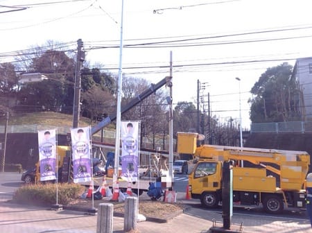 今日は古い街灯の撤去作業が行われていました。