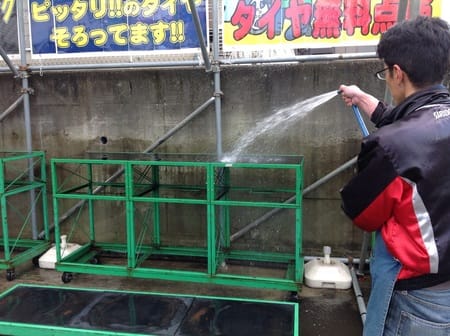 その後、夏タイヤを並べる前にいつものようにラックを丸洗い…