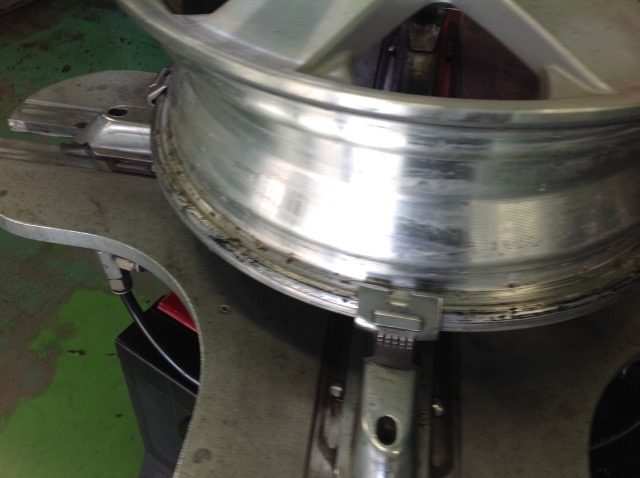 新しいタイヤを組む前にビート部分の汚れをキレイにします。