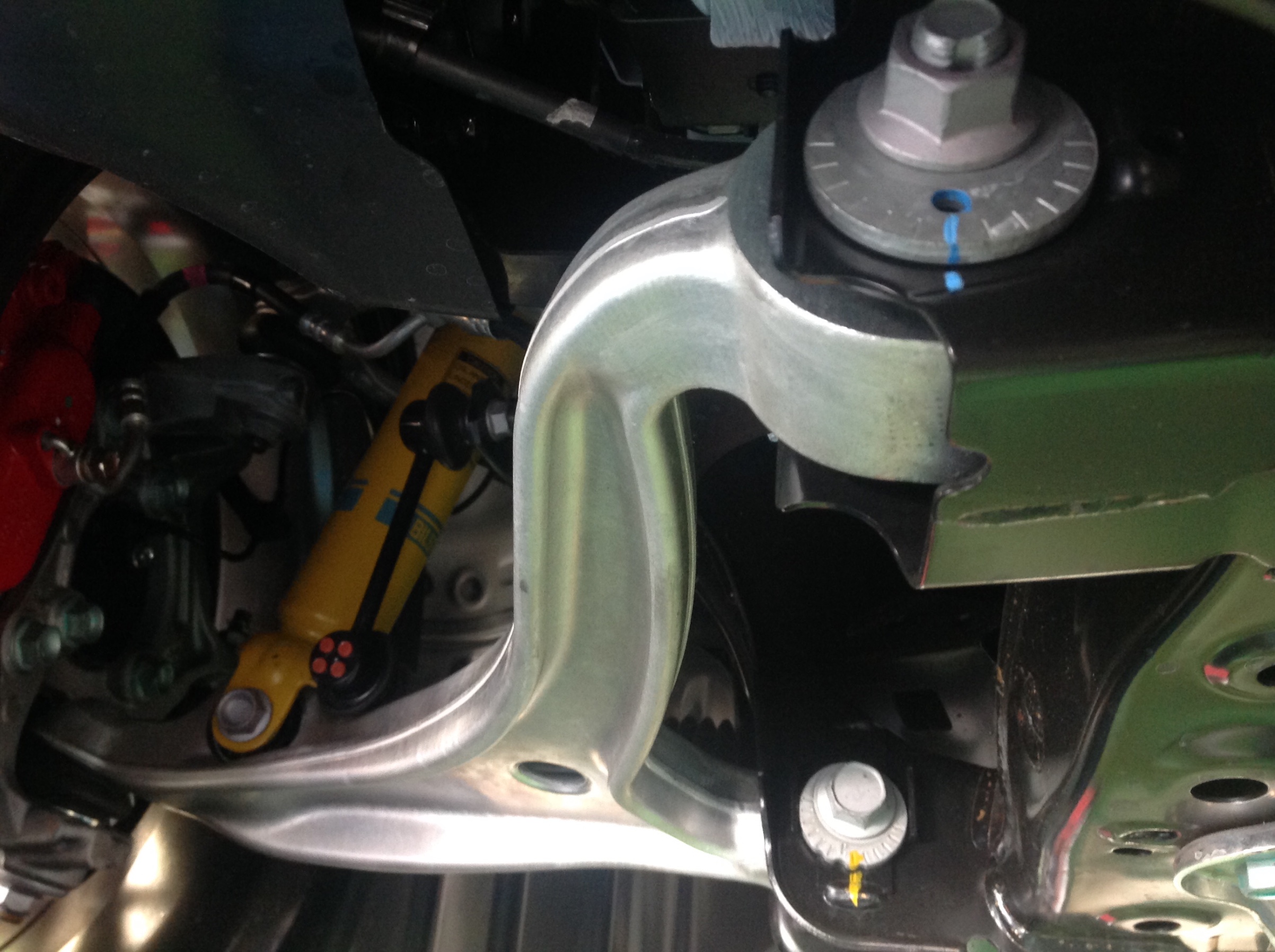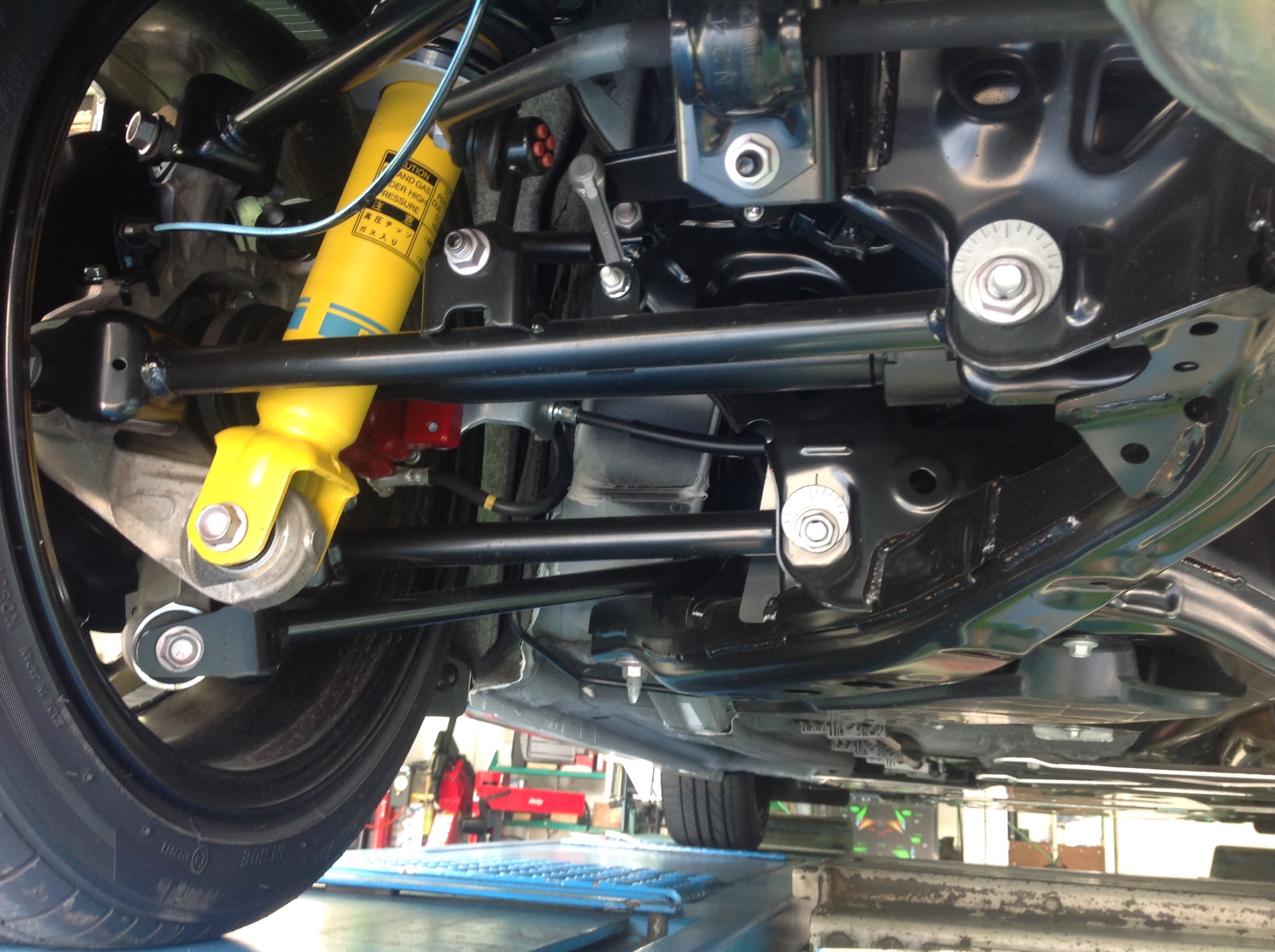 リアキャンバー、リアトウはロアアーム偏心カムで同時に調整。