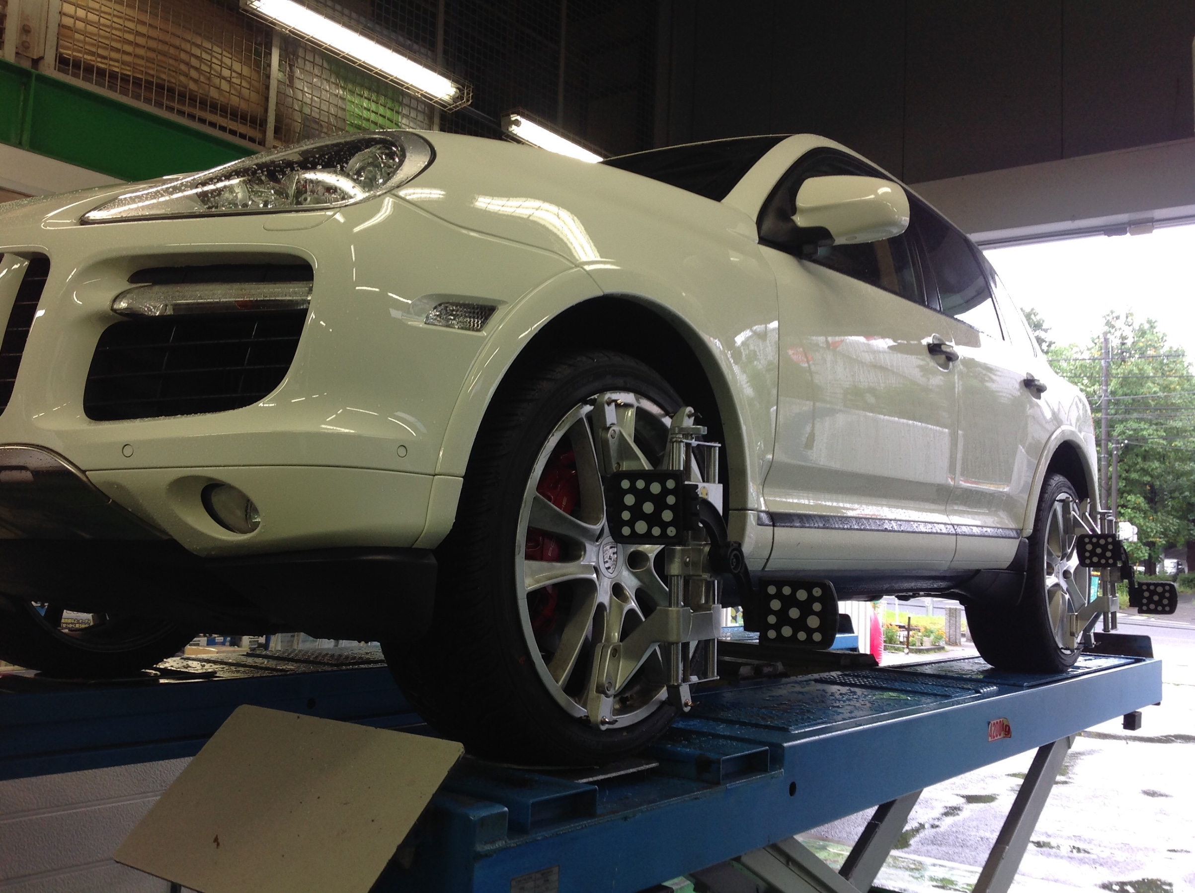 今日はポルシェカイエンのアライメントをやりますよ〜