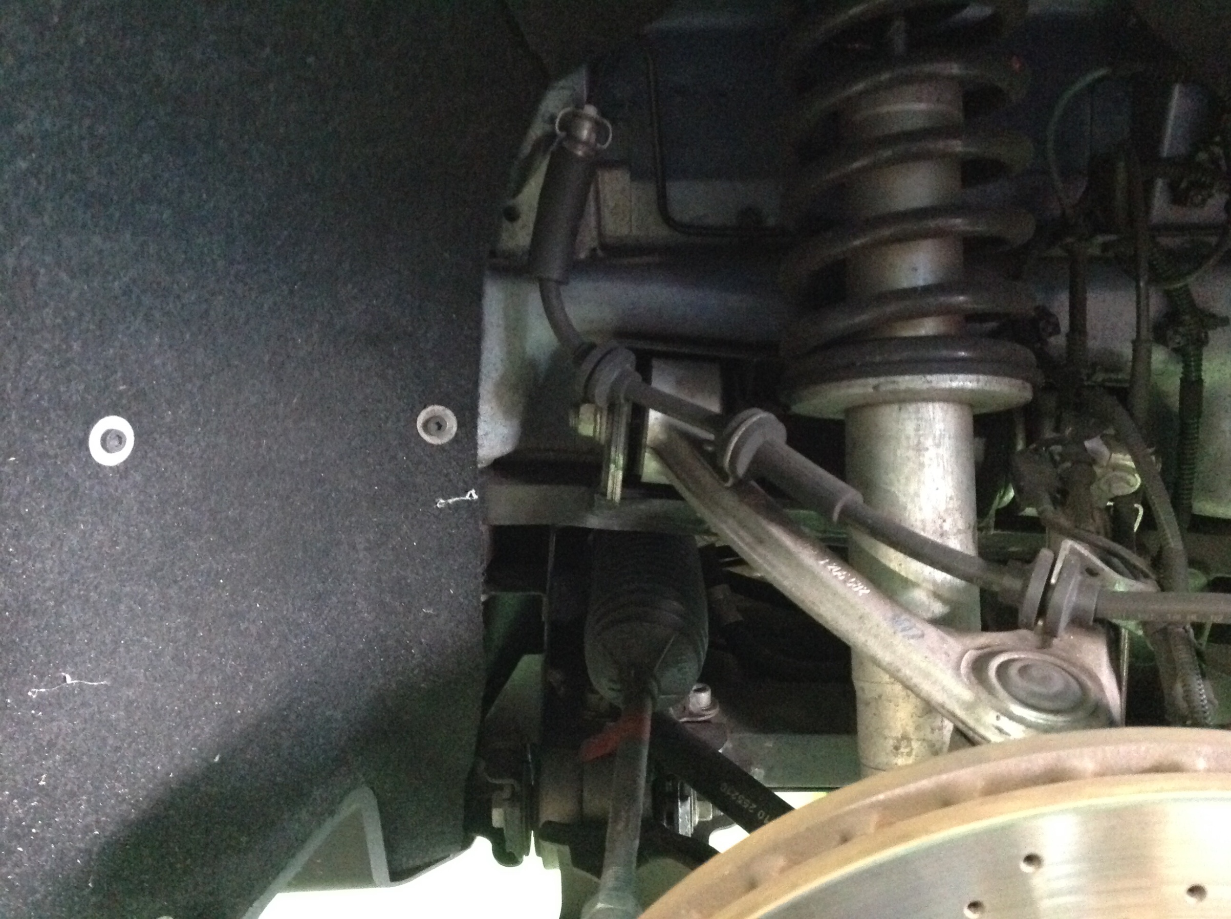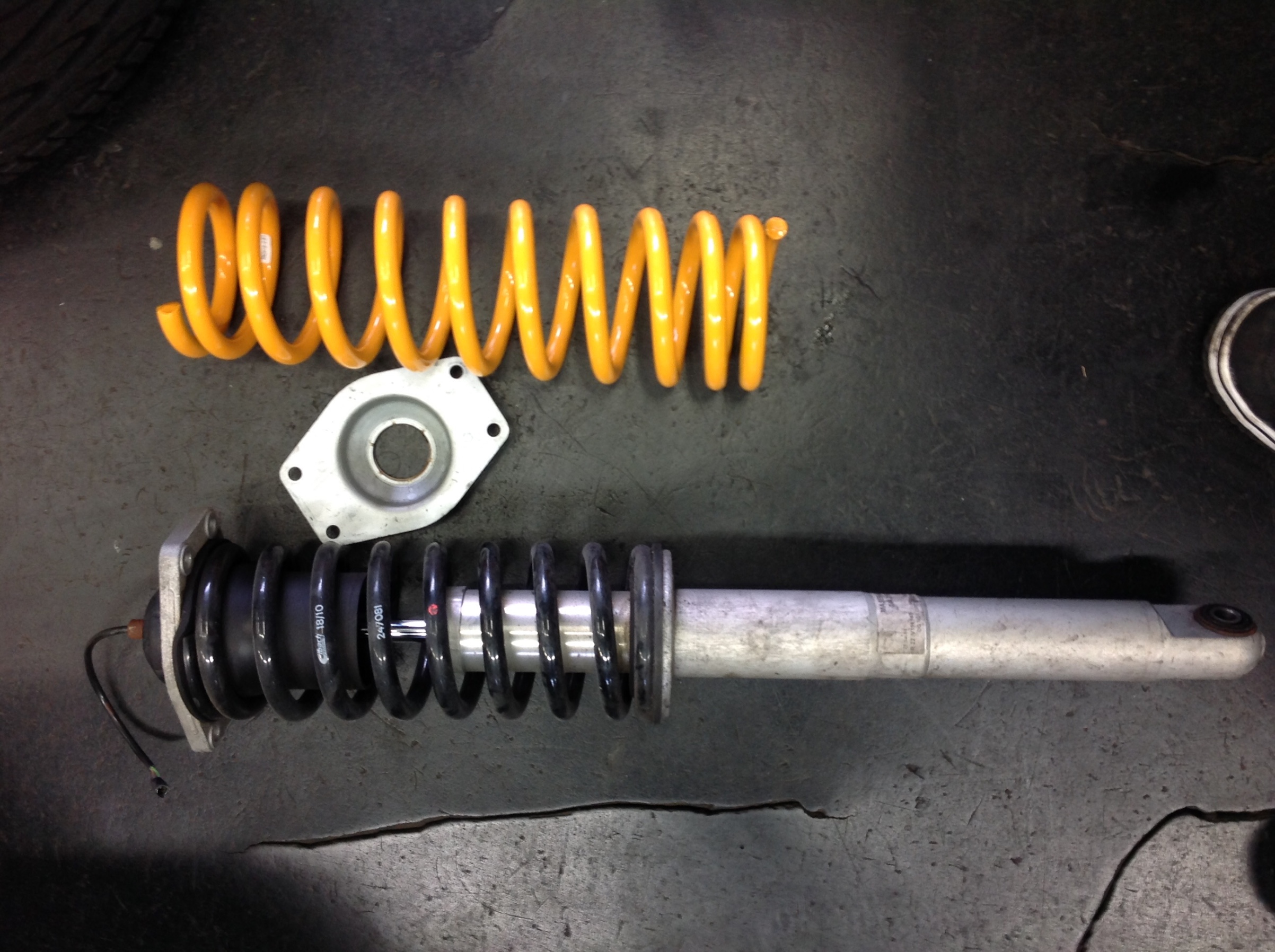 いたって普通のサスペンション。ただ配線・配管が多いので大変ですが、2分あれば大丈夫。