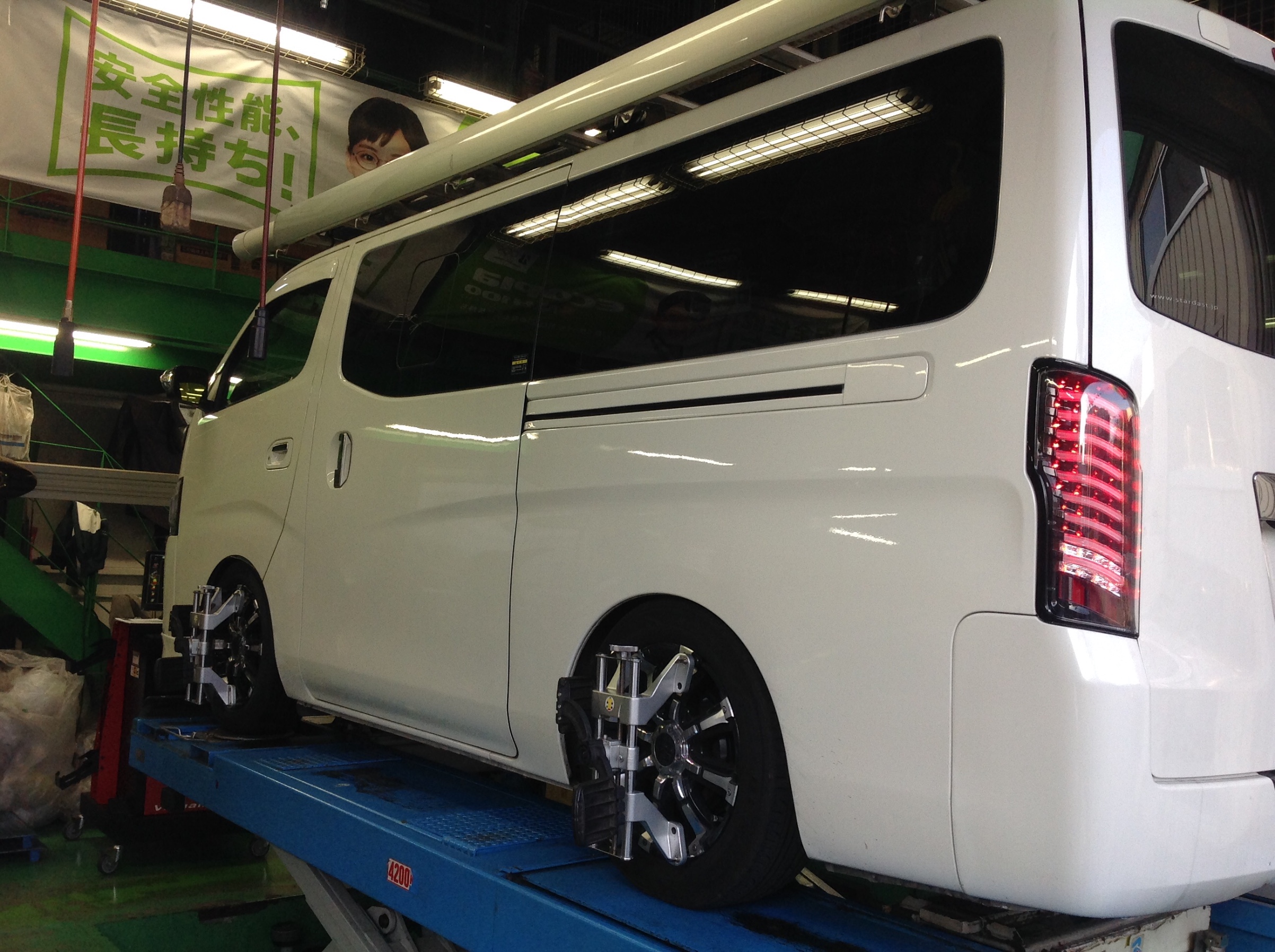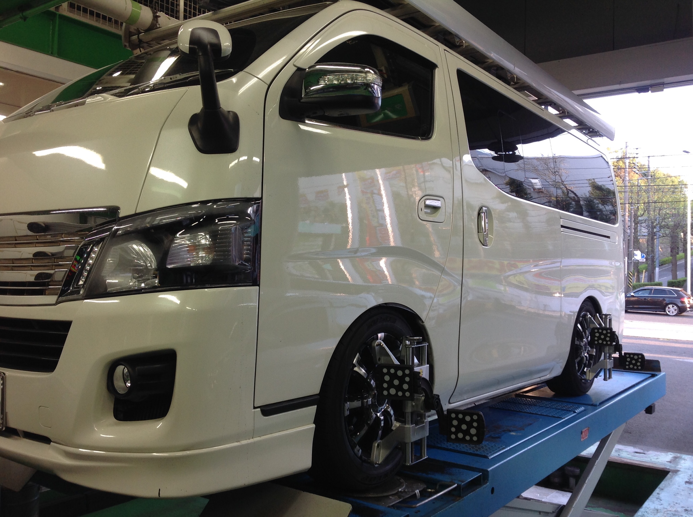 今日はニッサンNV350キャラバンのアライメント。