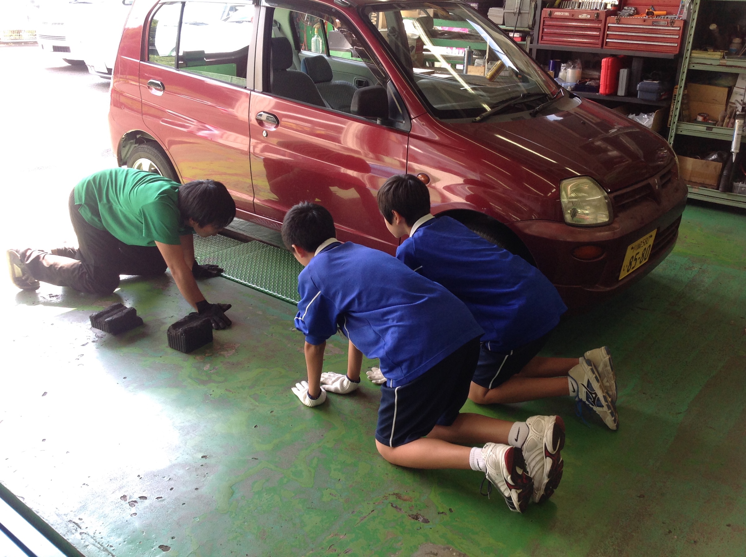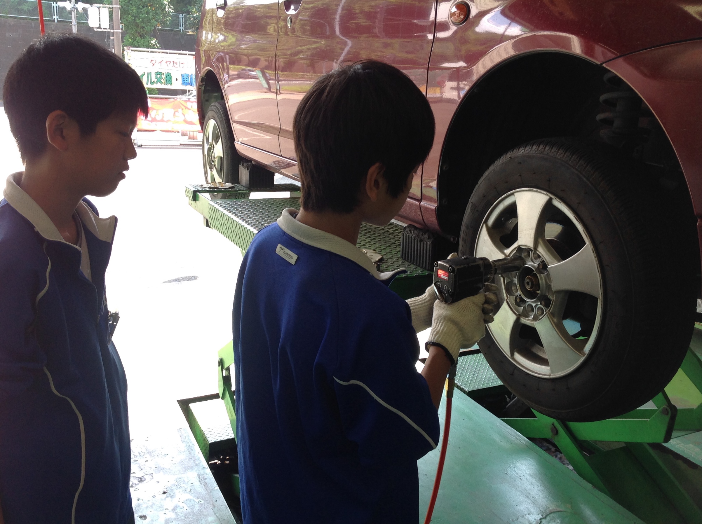 タイヤの脱着と空気圧のチェック等を教えてあげました。