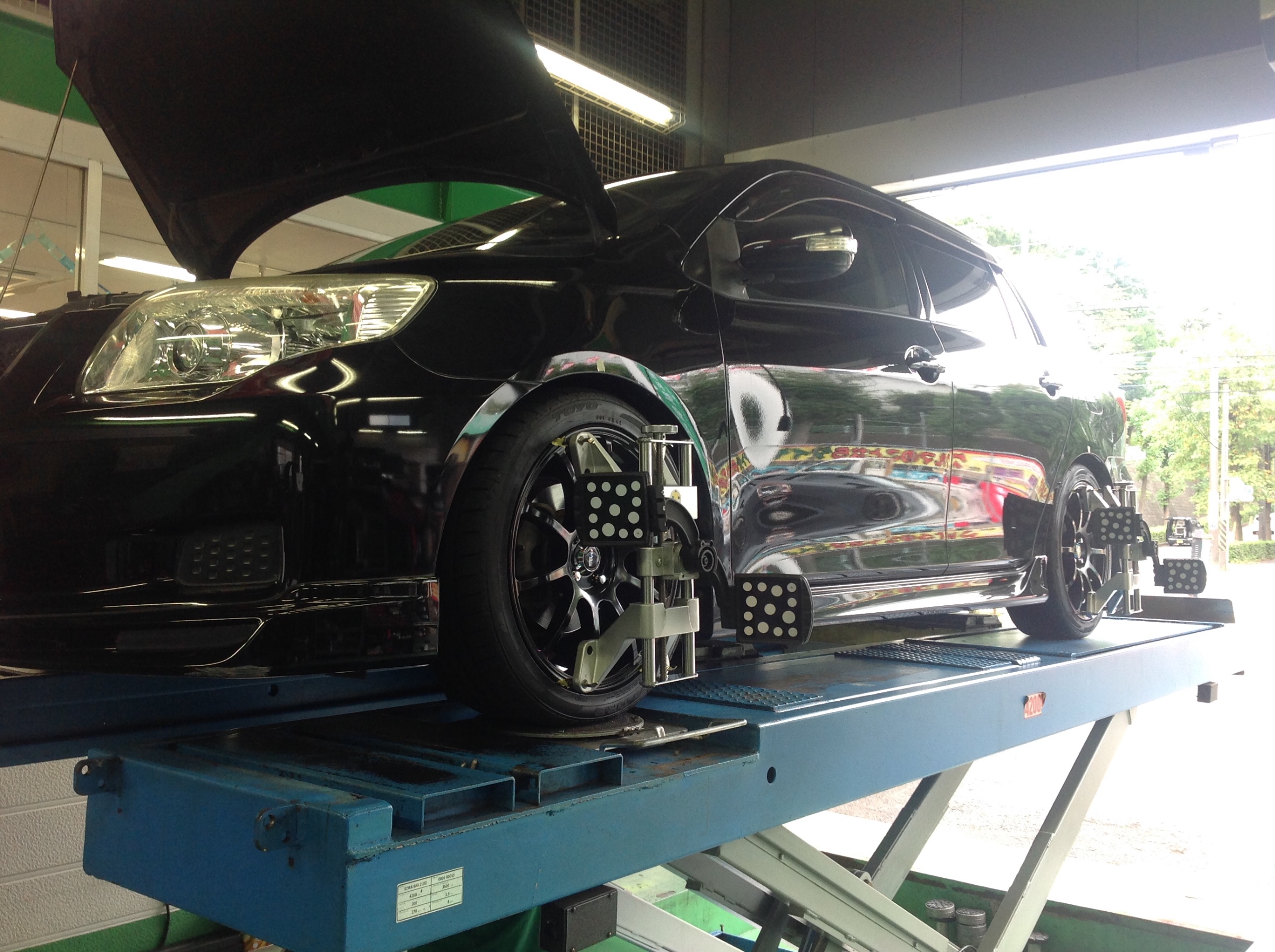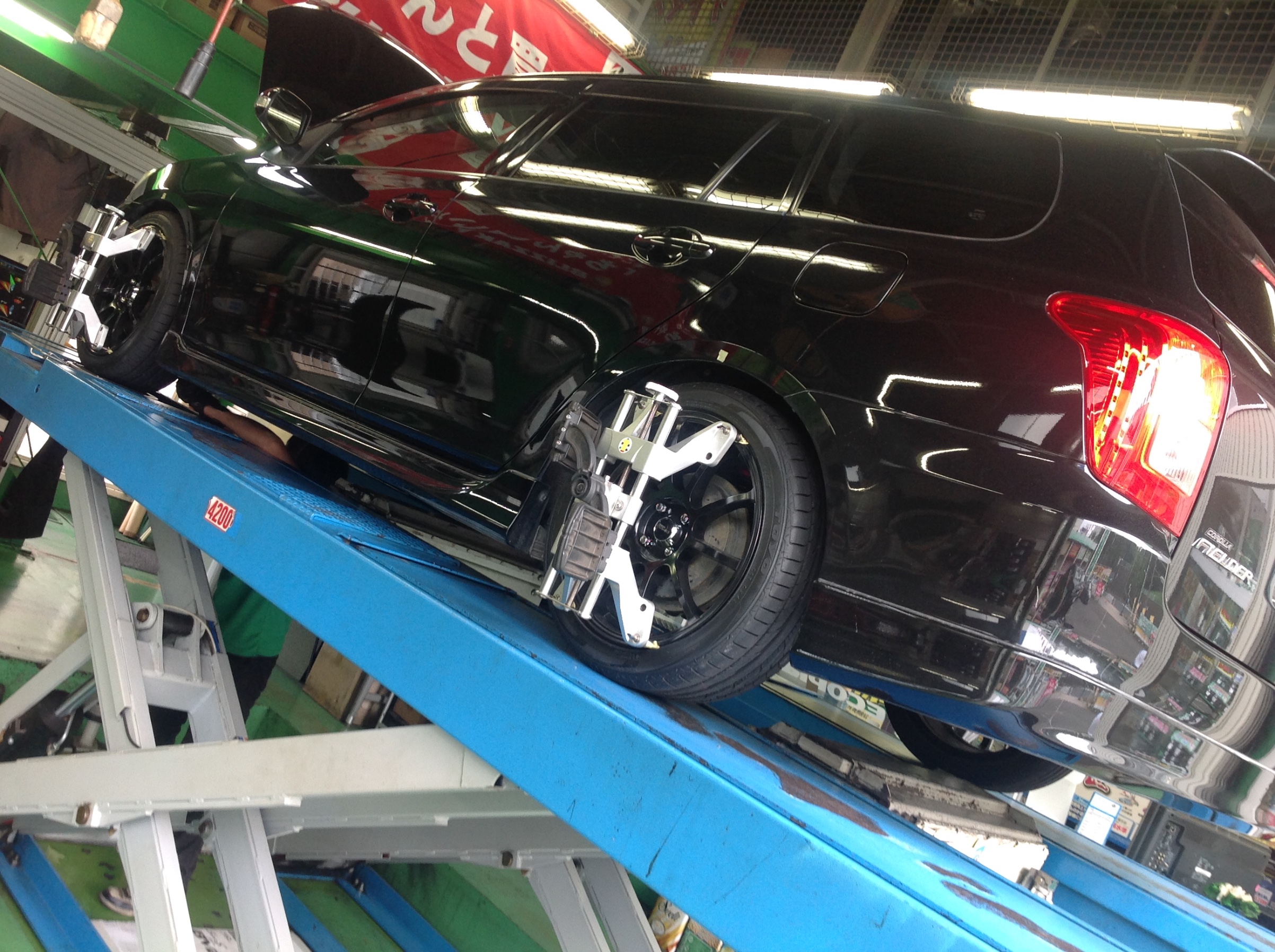 本日はカローラフィールダーのアライメントでーす。