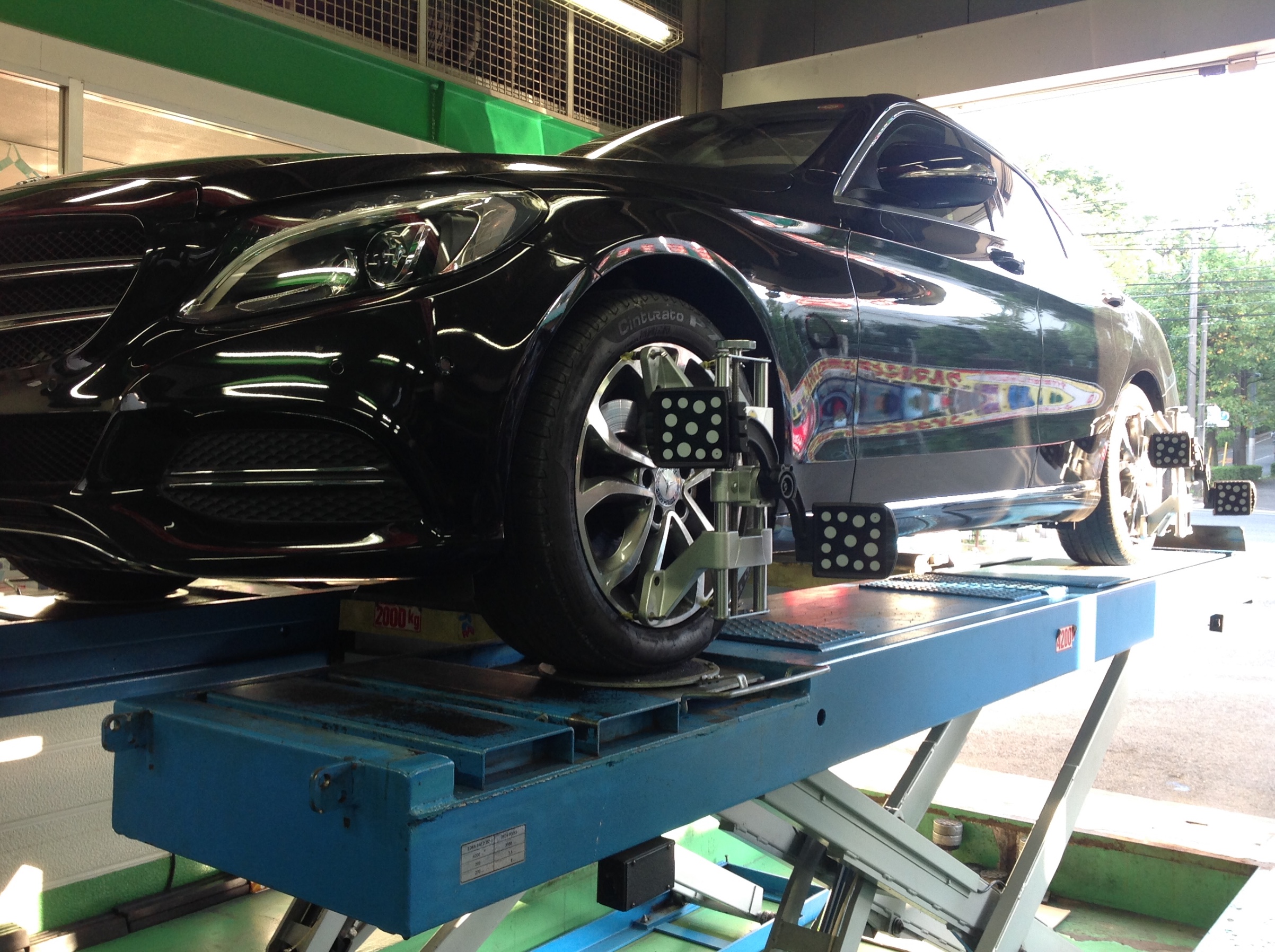 ハンドル真っ直ぐ、車も真っ直ぐ快適なベンツ205の完成です。