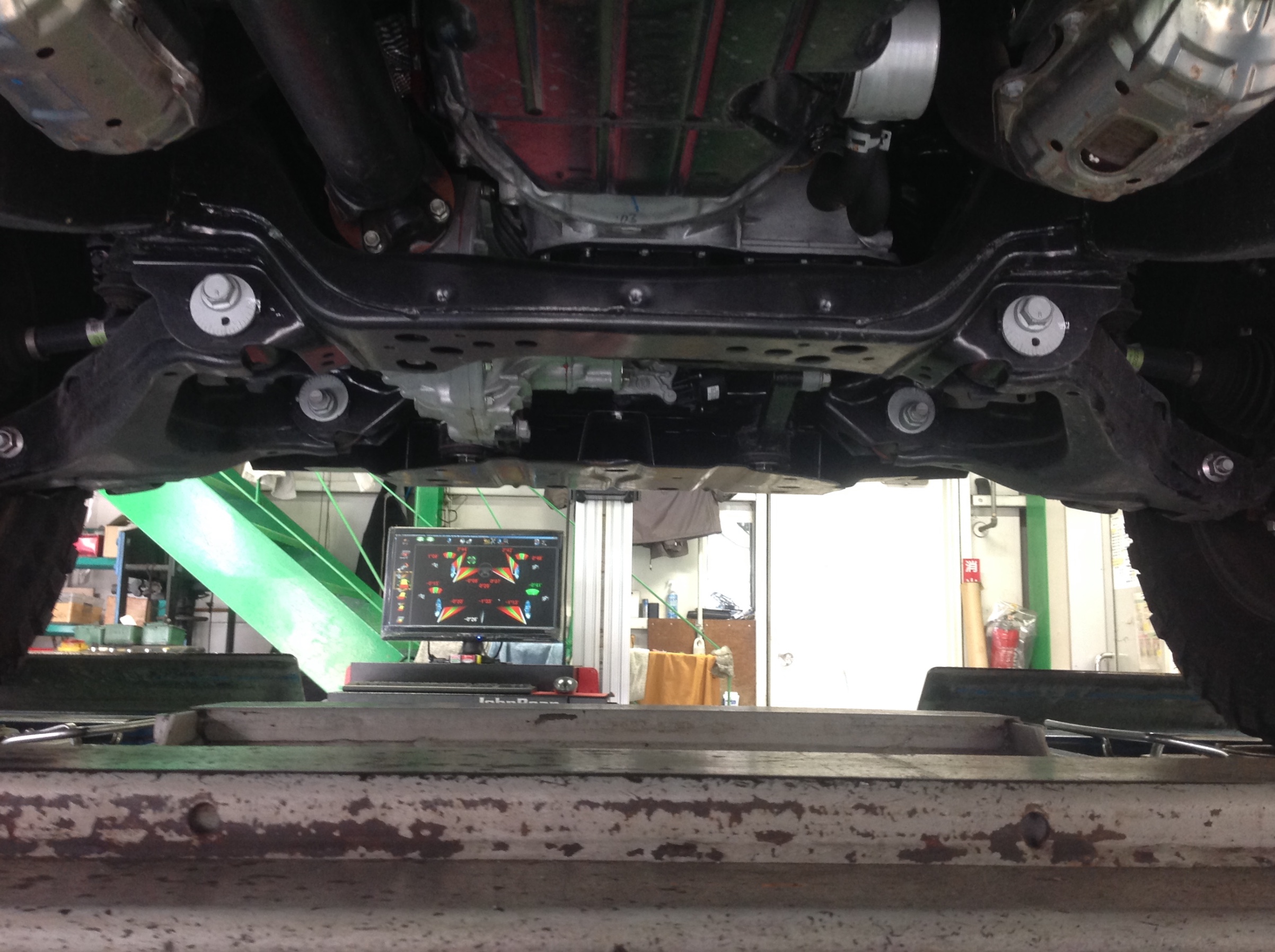 ハンドルズレ、直進性不良での入庫です。