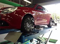 こんにちは ヤマカズです! 今回はアルファロメオ ジュリエッタのアライメント調整 直進性が今ひとつでハンドルが取られやすい という事アライメント調整する事になりました。 まずはリアキャンバーをロアアーム外側偏芯カムで 次にリアトウを調整 そしたらフロントトウをタイロッドで バッチリ真っ...