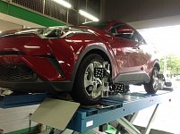 おはようございます。 台風の状況が気になるコイキングです。 今回は、当店初のC-HRです。 右フロントタイヤを縁石に引っ掛けてしまってタイヤ交換。 このお車はまだ5000kmもったいないので1本交換になりました お客様もチョット気になっていたアライメントをやらせていただく事になりました。 試乗...