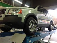 最近なんだか風が強いですね! 洗ったばっかりな1号機、2号機共に 既に汚れ、落ち込むヤマカズです。 こんにちは〜 今回はボルボXC90のアライメントです。 このお車はハンドルを真っ直ぐにすると右へ 真っ直ぐ走るにはハンドルを左へと行った症状で 入庫になりました。 試乗するとまさにその通りで...