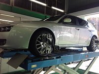 はい今日も元気に行きましょう!! ヤマカズですこんにちは〜 今回も連続登場 アルファ159 作業も先日と一緒になりますが アライメントを取りますよ! 『何か安定性に欠けるような感じがする』 ということで入庫です。 試乗をするとそうですね直進性が悪く 安定感がありません。 常にハンドルの修正...