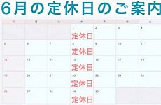 6月は通常通り、毎週水曜日を定休日とさせていただきます。 営業時間につきましては、トップページでご確認ください。