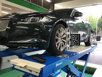 こんにちは〜 ヤマカズです! 今回はジャガーXFのアライメントになります。 リアのタイロッドを交換したため入庫になりました。 まずは試乗へ 概ね真っ直ぐ走ってはいますが ハンドルが右に傾斜しています。 これは主にリアトウのズレによってスラストのズレが大きくなり ハンドルがズレていると思...