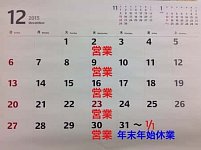 ★☆12月の営業のご案内☆★ 当店では、毎週水曜日を定休日とさせていただいておりますが、 冬の繁忙期を迎えるにあたり、年内の水曜日は臨時営業いたします。 (1月から再び水曜定休日となります。ご注意ください。) また、年内の営業は12月30日(水)迄とし、31日(木)は年末休業といたします。 何...