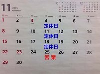 ◇◆◇11月&12月の営業日のご案内◇◆◇ 当店では、毎週水曜日を定休日とさせていただいておりますが、 冬の繁忙期を迎えるにあたり、11月25日以降の年内の水曜日は臨時営業いたします。 又、年内の営業は12月30日(水)迄とし、31日(木)は年末休業といたします。 予めご了承いただきますようお願いいた...