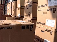 スタッドレス冬商戦に向けた入荷で、タイヤより厄介なのがアルミホイールです。 一箱がまぁ〜重いこと(⌒-⌒; ) これを一回の入荷で100箱以上トラックから降ろし、おじさん達がアリさんのように 2階倉庫への階段を登る姿は、なんとも哀れなもんです(笑) 腕はパンパン!脚はガクガク!です。 しかし...