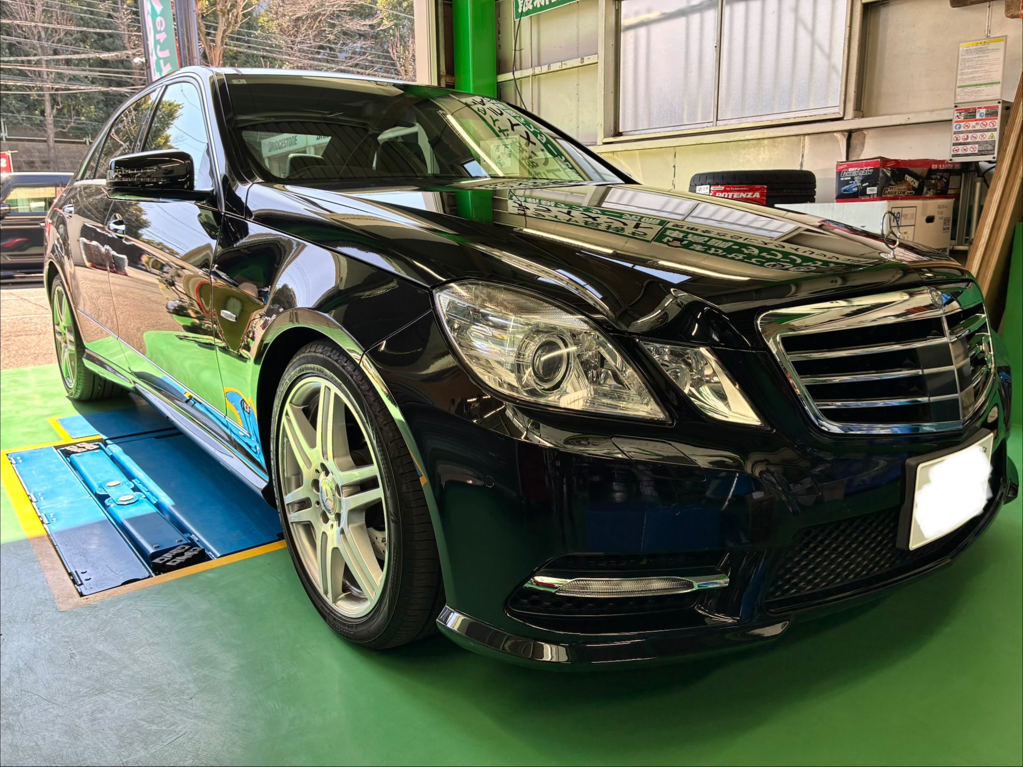 こんにちは。 最近、毎朝納豆を食べるようにしているので、おなかの調子がいい気がしているのは、ボクです。 サスペンションリフレッシュを数多くやっている当店ですが、 国産車のみならず、輸入車も得意ですよ!!お求めやすくご相談に乗りますよ。 本日は、メルセデスベンツのEクラス。型式で言...
