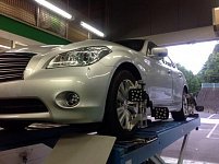 今日は生憎の天気ですが 涼しいので「OK」って感じの ヤマカズです。 こんにちは〜〜 ちょっと時間が空いたので 先日行った、フーガのアライメント。 タイヤの摩耗が気になるという事で入庫しました。 試乗走行では少々のハンドルずれ、直進性も今ひとつ。 では早速データを取るとやはり左右でのズ...