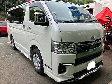 こんにちは。 休日は、夕食を作るのが楽しみで作りながら酒を飲み、出来上がると自分も出来上がっているのは、ボクです。 今日は、超人気車種のハイエース。発注もできないとかいろんな噂が出ておりますが、 こちらのお客様は、なんとかゲットできたらしく、バリバリの新車でございます。 カッコイ...