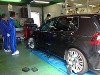怪我なく終える事が第一なのですが、 机でタイヤの説明を聞いているだけでは退屈だろうと、 実車にタイヤを取り付けてみたり、 タイヤにワックスをかけたりと作業も体験してもらいました。 当店自慢のこだわりアライメント調整では、 普段見ることが出来ない車の下に潜って見学!。 こういう事がき...