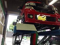 当店で車高調•ダウンサス等をお買い上げのお客様には、 必ずアライメント測定•調整をお勧めして、 施工させていただいております。 しかも1回分の料金で2回!2回!! それは何故か?ってーと、 しばらく走行すると馴染んできて、 車高がチョット下がって落ち着くんですね。 アライメントっつ~のは...