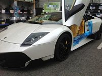 当店にて、おそらく最強クラスのスーパーカーの登場です。 イタリアの跳ね馬の方ではなく、 闘牛の方のドアが上下に開閉する車です。 『ランボルギーニ ムルシエラゴ LP640』 カッコいいですね〜! ホレボレしますねぇ〜! ムラムラしますねぇ〜! おまけにベース車より高出力(640PS)のエンジン...