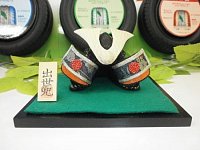 5月の節句の兜です。 小さぁ~いお飾りですが あると無いとではまったく違いますよね。 これ確か羽田空港で買ったんだっけなぁ~・・・ 外国の旅行者が「 サムラーイ!! 」とハイテンションでした。