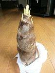大きなタケノコ!!! 当店の周辺には 新鮮な野菜を売っている“ 無人販売所 ”がたくさんあります。 今の時期はやっぱりタケノコ。 たっぷりのお湯に糠を入れて灰汁ぬきをします。 炊き込みご飯・煮物・てんぷら・・・etc. 楽しみです。