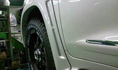 こちらのランクル、歴代の車で長く当店をご利用いただいているお客様です。 当初、オーバーフェンダーは予定していませんでしたが、一目ぼれでどうしても 履きたいアルミホイールがあり、ノーマルボディではどうしても車体からタイヤが はみ出すサイズ(インセット)しか設定が無く、オーバーフェン...