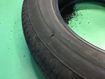 こんにちは! 本日は、タイヤの側面を引っ掛けてしまい交換になります。 サイドカットは修理ができないので交換です。 サイドカット後、走行していたので内部が破損していました。 今回はエコピアNH200Cに交換です。 雨にも強いので安心です。 ご来店ありがとうございました。