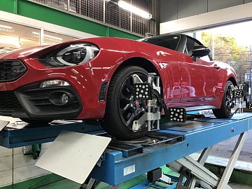 こんにちは〜 ヤマカズです! 今日はアバルト124スパイダーのアライメントです。 もうご存知かもしれませんが この124スパイダーはアライメントフル調整が可能 時間は少々掛かりますが 思いのままの調整が可能です。 まずはリアのキャンバー、トーの調整から ロアアーム前側の偏芯カムでキャンバー ...