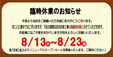 本日よりタイヤ館ジャパン宮前は臨時休業となります。 タイヤ館としてこの土地でお店をオープンしてから30年あまり・・・ 大改装工事のための臨時休業です。 期間中はお客様に大変ご迷惑をおかけいたしますが、今まで以上に快適で利用しやすい店舗に生まれ変わるために様々な準備を進めております。...