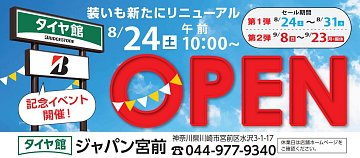 タイヤ館ジャパン宮前 リニューアルオープンのお知らせ
