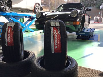 こんにちは〜 ヤマカズです! 今日はポルシェ911の964に ポテンザS007Aを取り付けました。 サイズはフロント205/55R16、リア225/50R16 もともと全く同じものが装着されていましたが 5年の年月が経過したということで本日交換になりました。