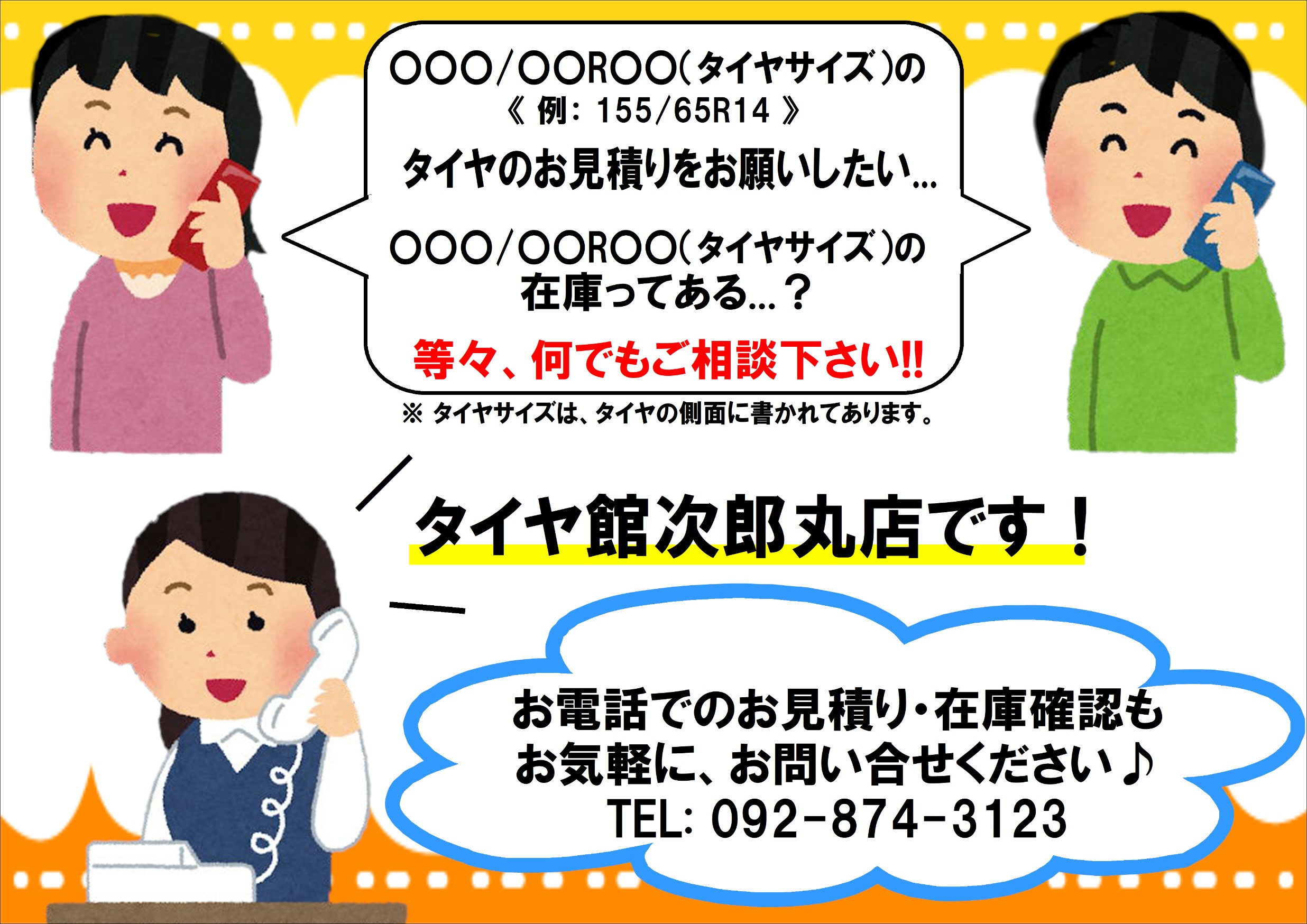 ついで点検を合言葉に、当店 タイヤ館 次郎丸 のスタッフにお申しつけ下さい☆彡