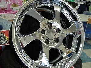 次郎丸店では「アルミホイール在庫処分コーナー」を入り口に設置して