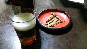 骨せんべいをあてにビールをちょびちょび飲みながら