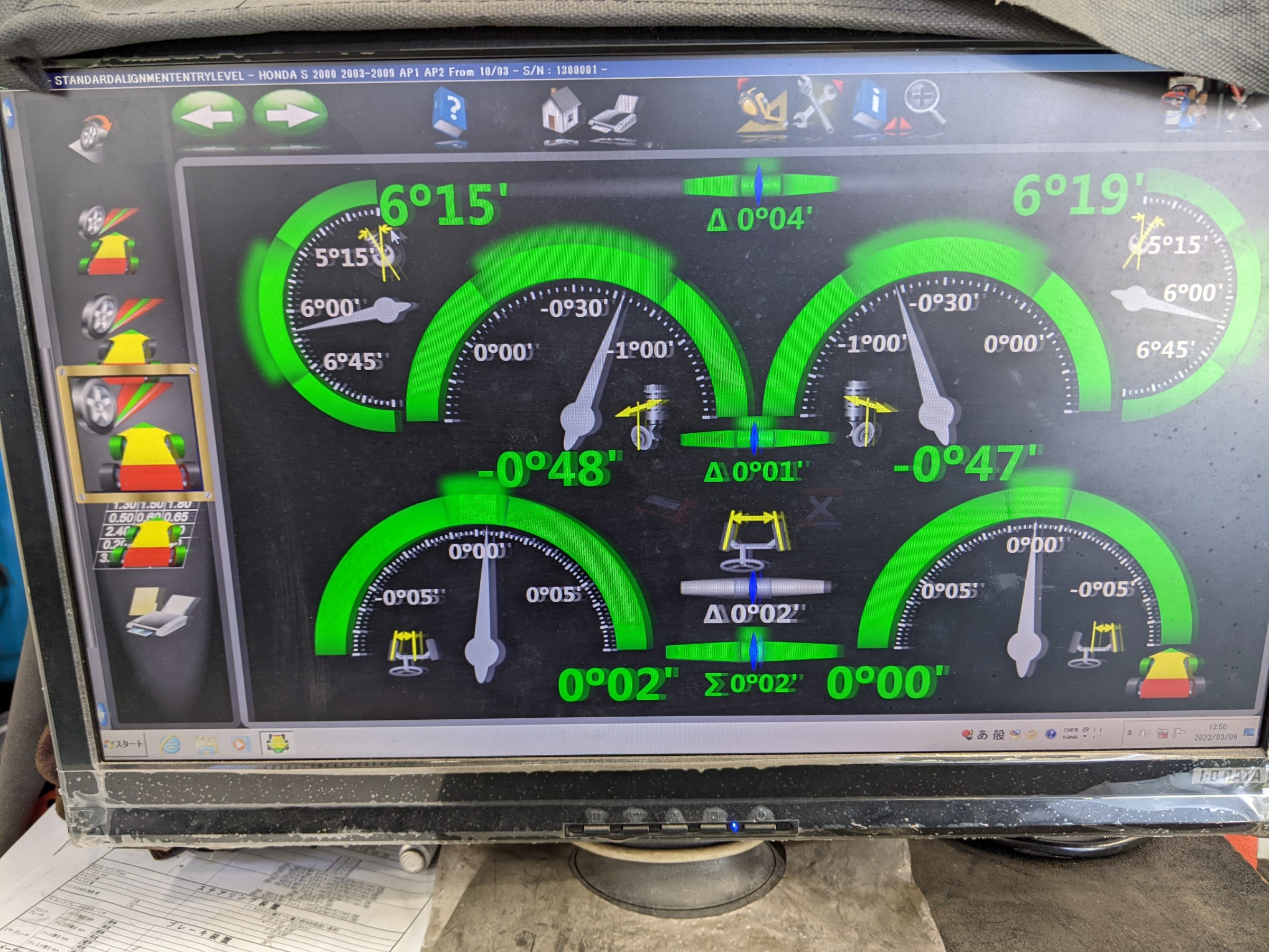 本日の作業紹介は、S2000 AP2 のアライメント調整です。