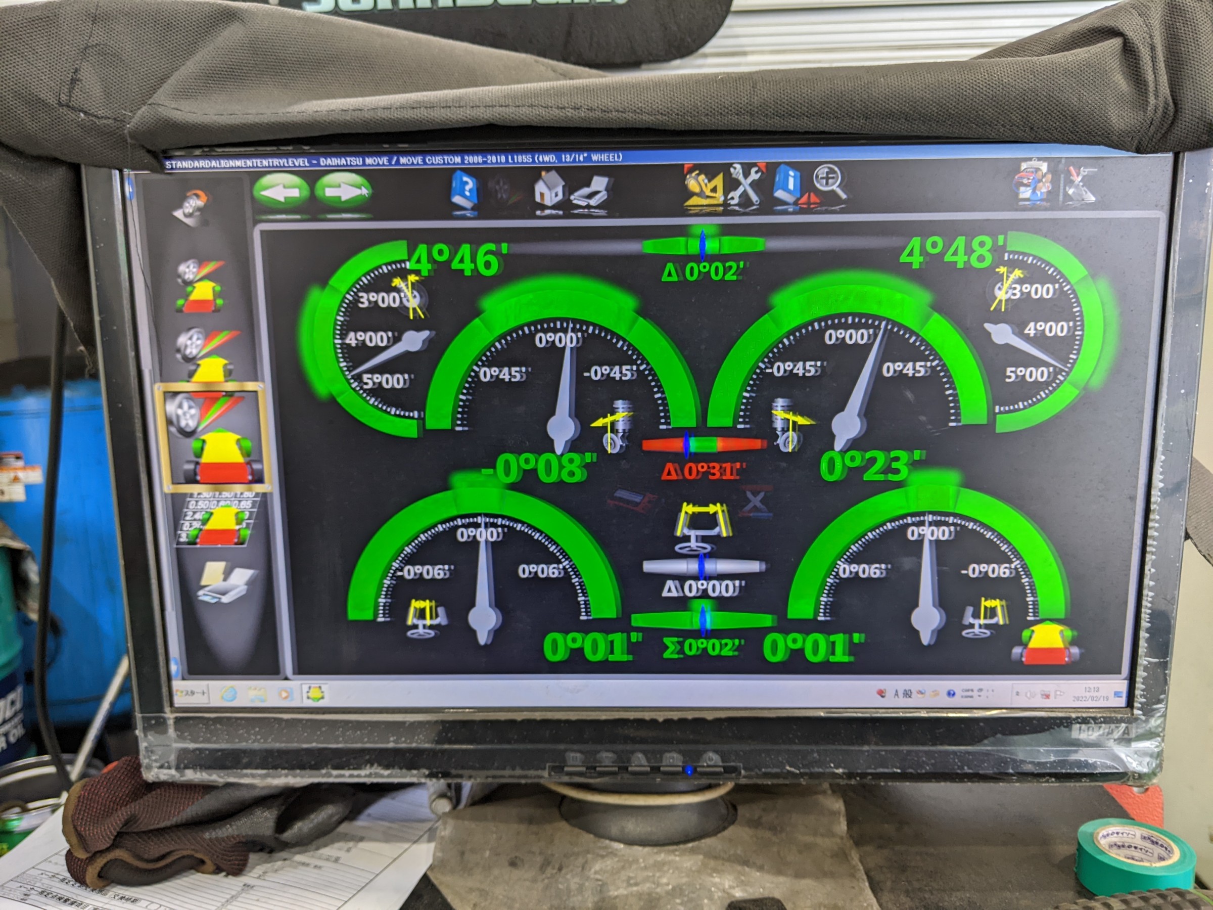 本日の作業紹介は、ムーヴ L185S の アライメント調整 です。