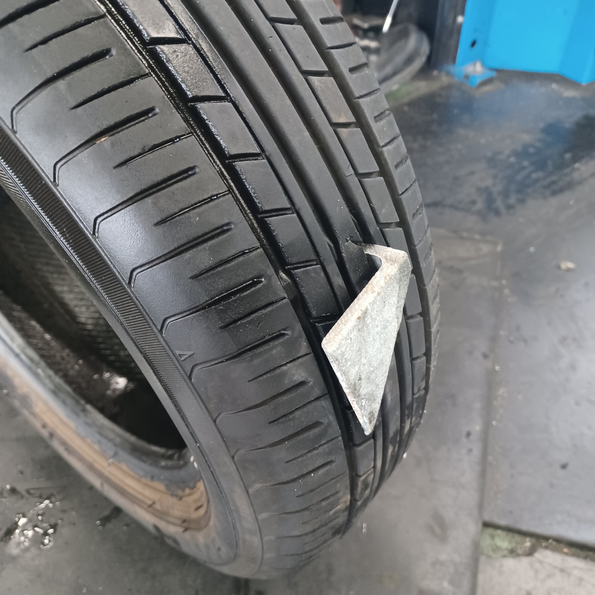 傷口が大き過ぎる為、パンク修理は