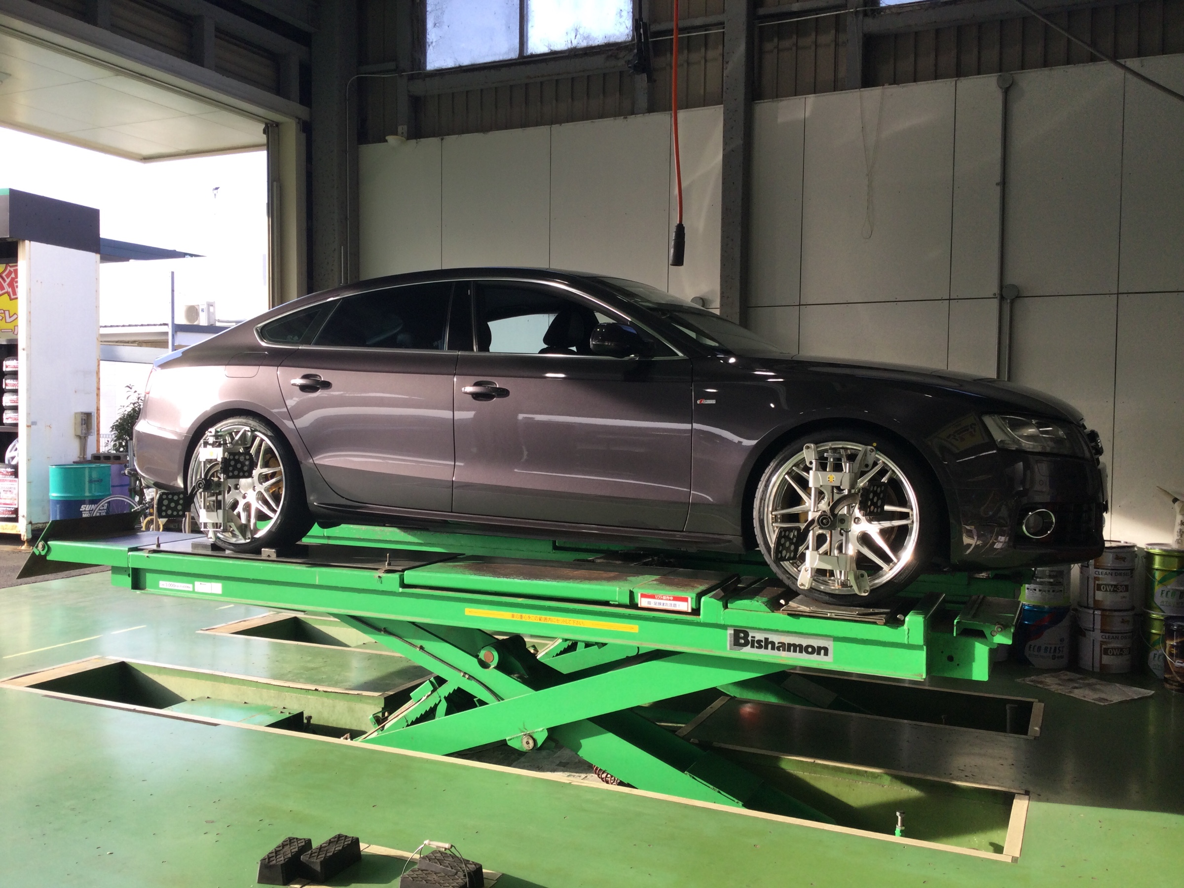 AUDI A5 Sportback ポスト 2022年4月21日 福岡市早良区のタイヤ館次郎丸です。 今回は、いつもご利用いただいているY様の アウディA5スポーツバックの タイヤ交換とアライメント調整です。 すでにリフトアップ済みですね。 タイヤはいつものポテンザS007Aです! 高速走行時の信頼度は絶大です! 交換後はもちろん、アライメント調整を行いました。 ありがとうございました。 担当:工場長