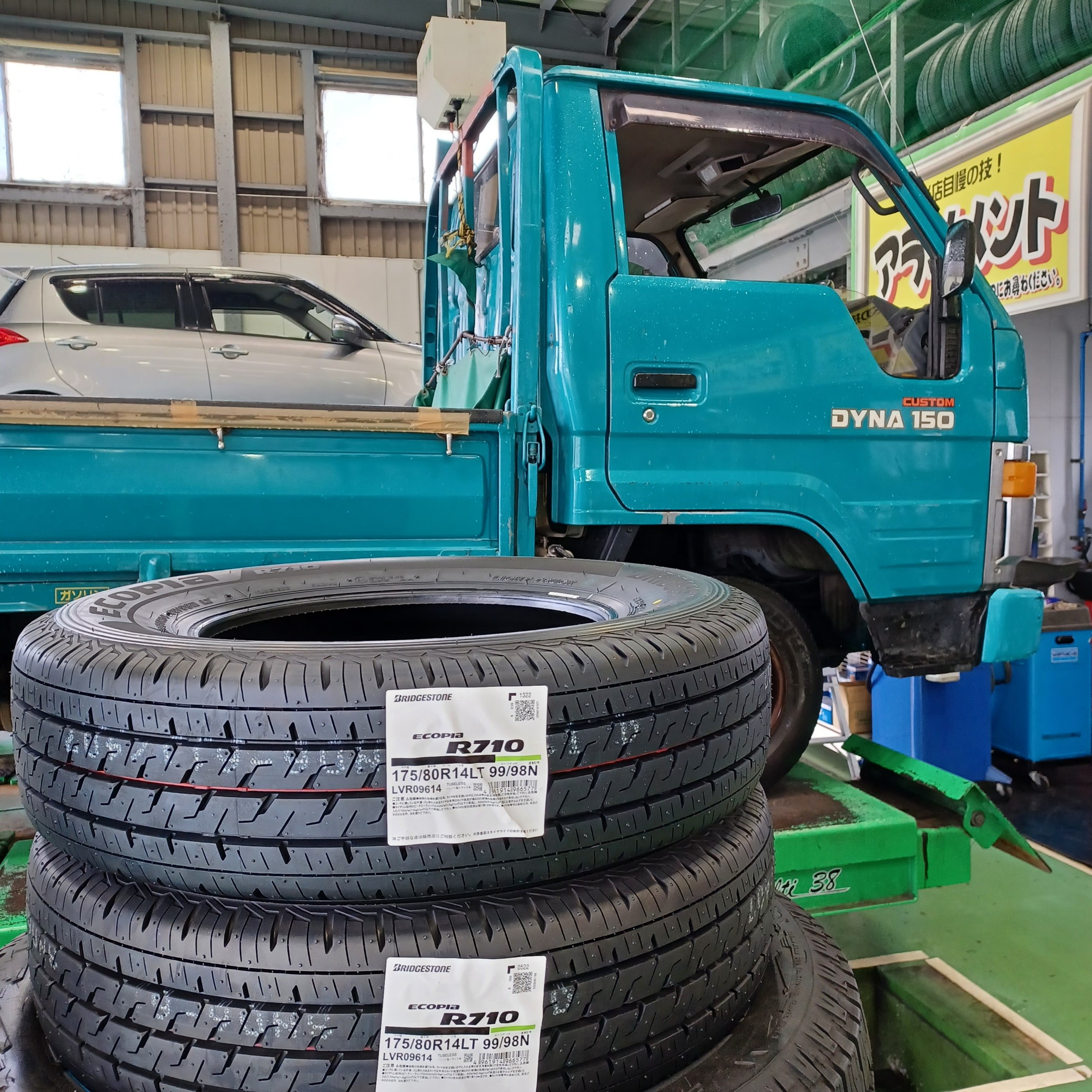 タイヤ交換、トラック、BRIDGESTONEエコタイヤ、R710