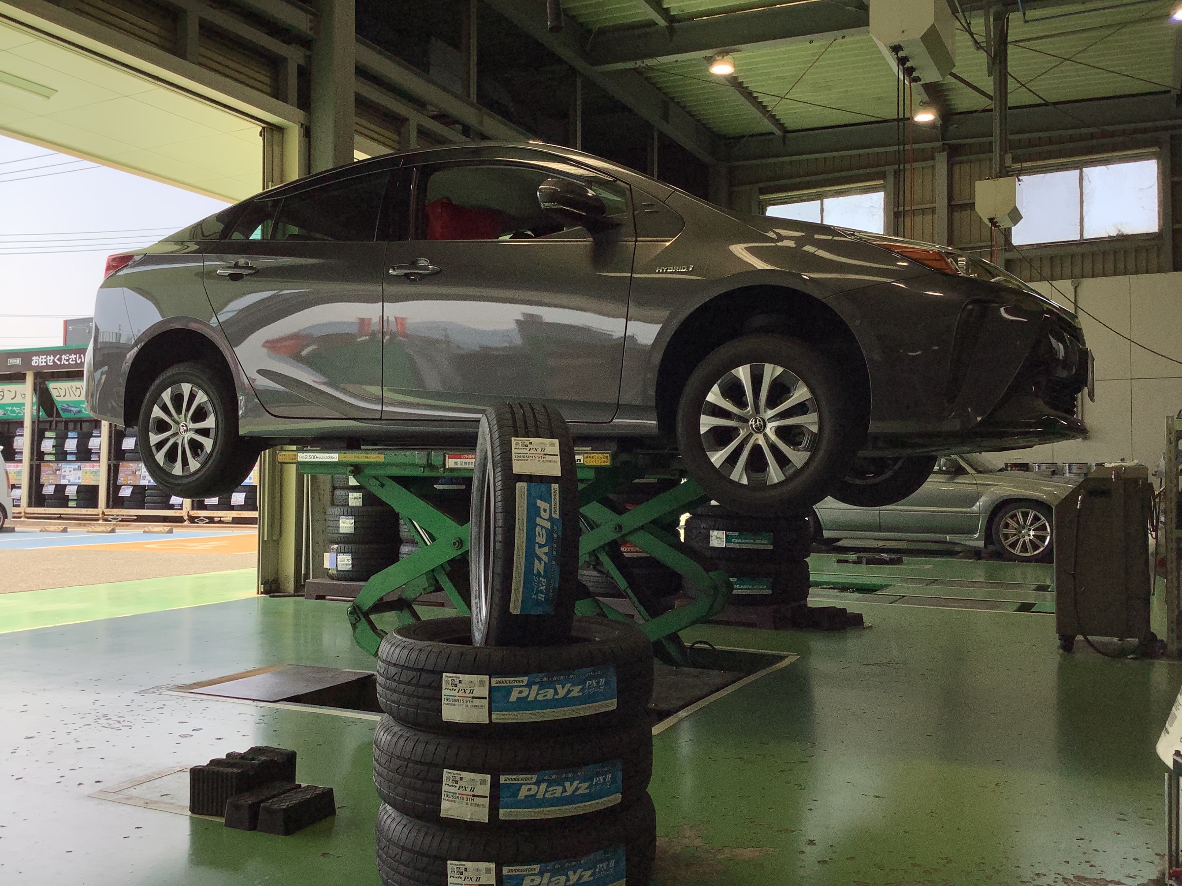 タイヤはPlayz PXII 195/65R15です。交換前に装着していただいていたタイヤがECOPIAだった事から、お客様のお話をお伺いしながら今回はPlayzをオススメさせていただきました♪ウェット性能は抜群に良いので、雨の日も安心して走行していただけますね♪